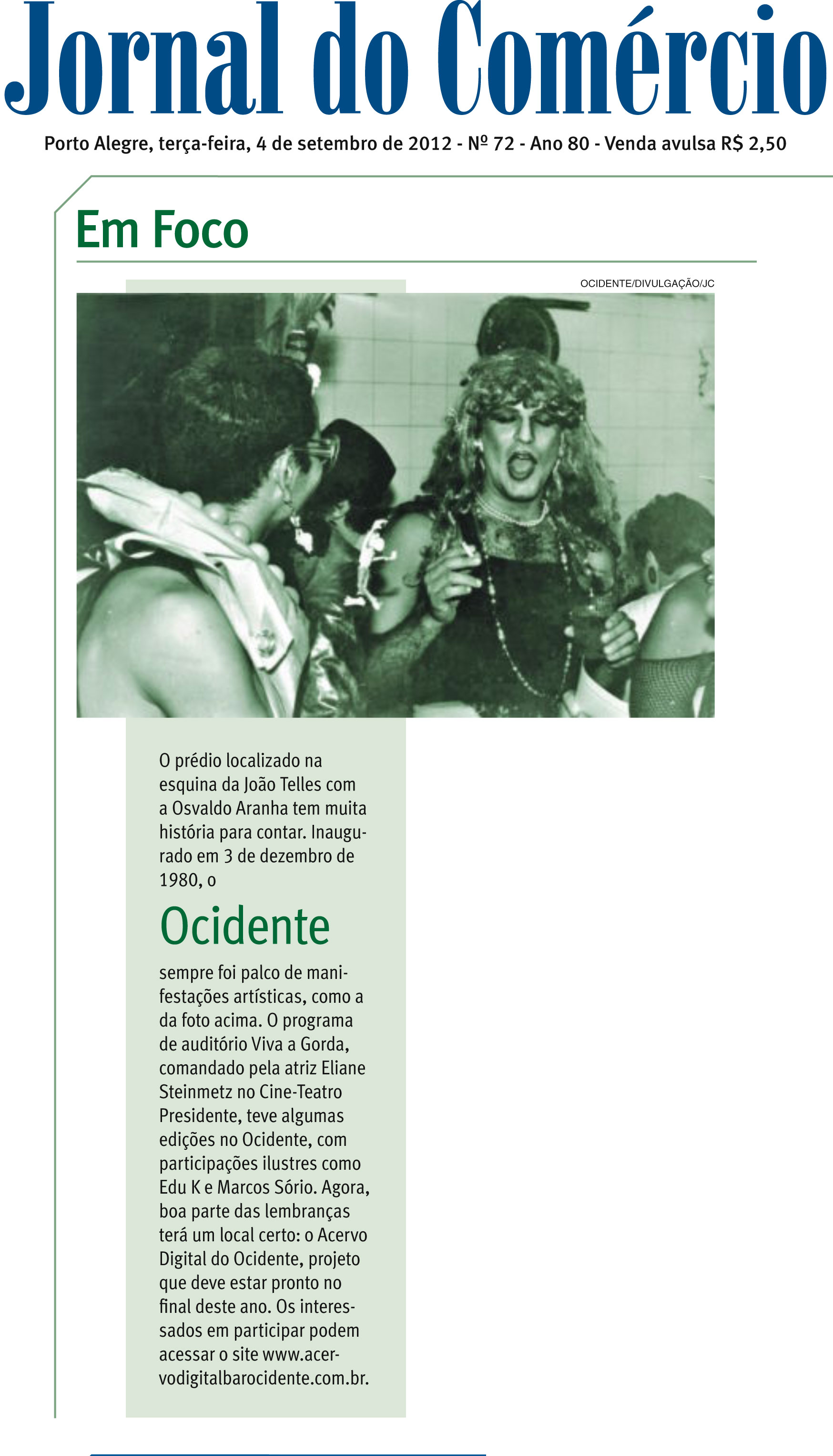 Acervo Digital Bar Ocidente, Jornal do Comércio, Na mídia