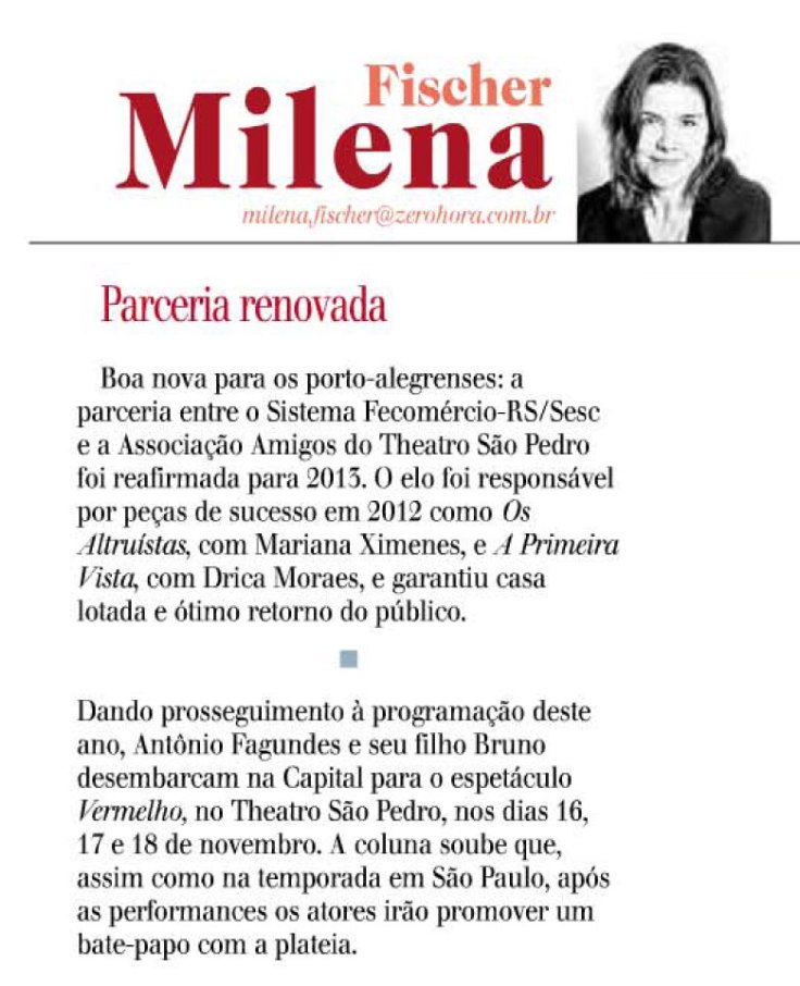 Milena Fischer, Sesc, Sistema Fecomércio RS, Theatro São Pedro, Vermelho, Zero Hora