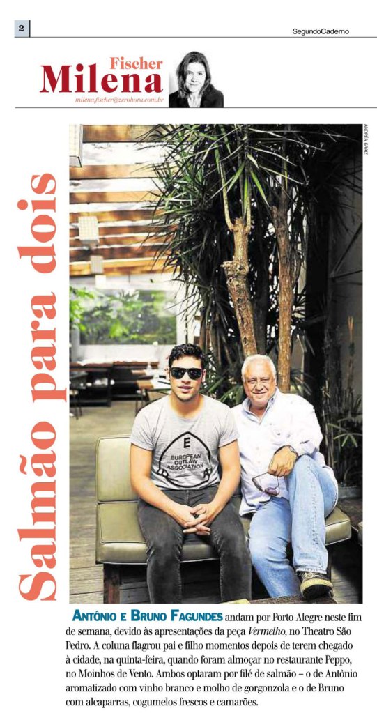 Antônio Fagundes, Bruno Fagundes, Milena Fischer, Na mídia, Vermelho, Zero Hora