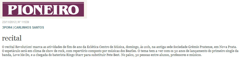 Recital de Nova Prata foi destaque na coluna 3POR4 de Carlinhos Santos: