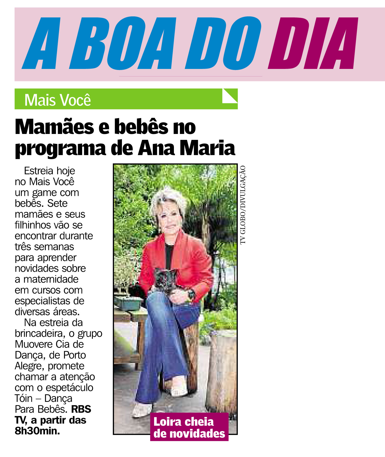 Diário Gaúcho, Mais Você, Na mídia, Tóin - dança para bebês