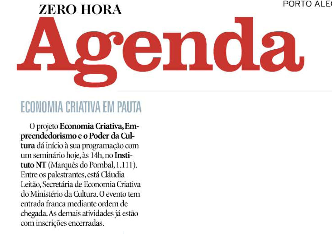 Alecrim Produções, Correio do Povo, Economia Criativa Empreendedorismo e o Poder da Cultura, Metro, Na mídia, O Sul, Zero Hora