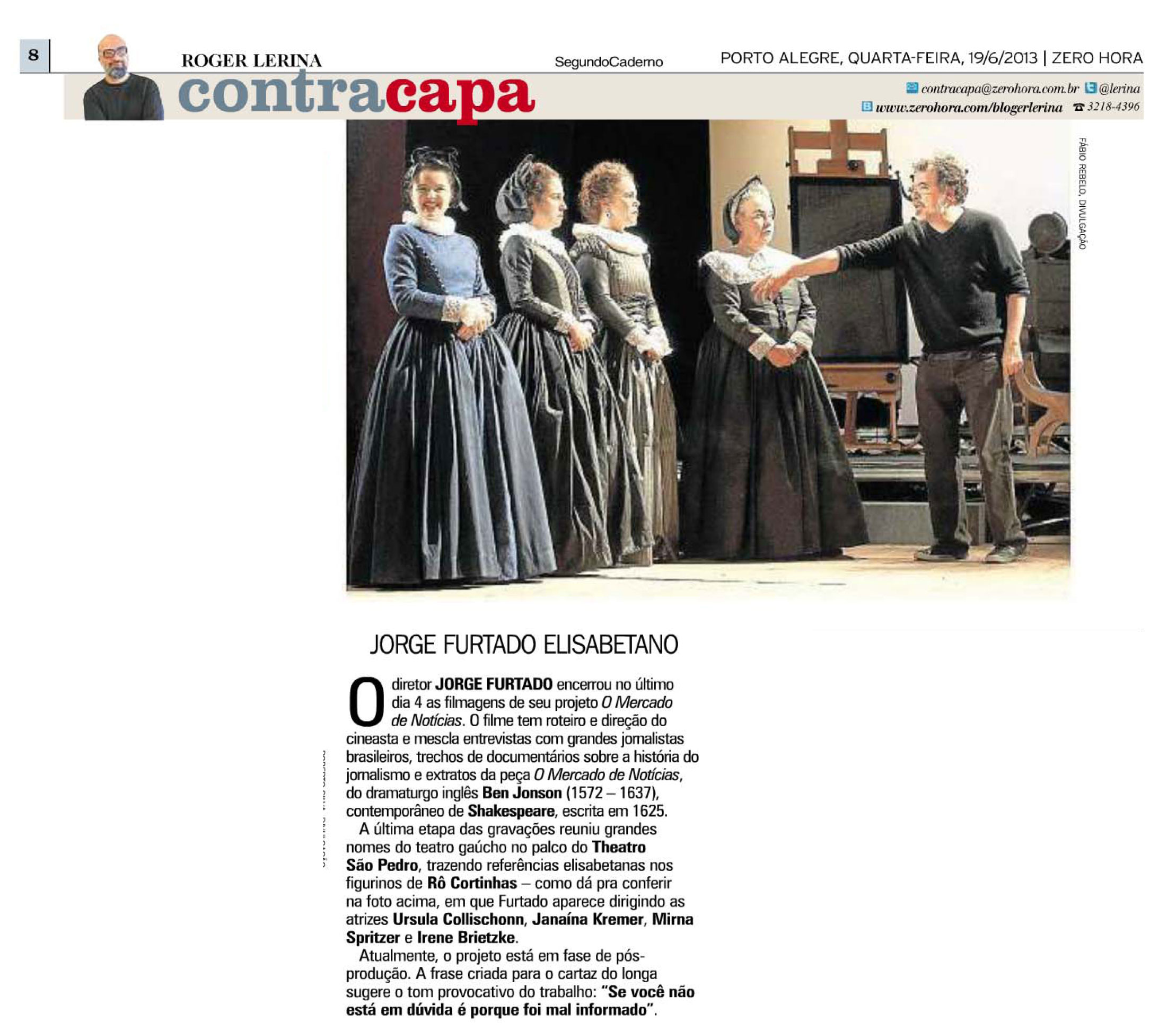 Jorge Furtado, O Mercado de Notícias, Roger Lerina, Zero Hora