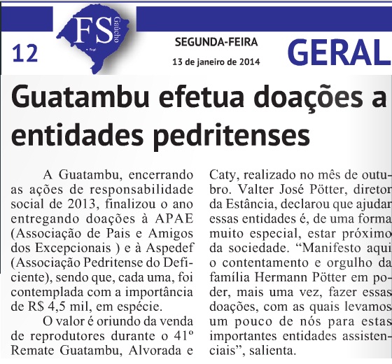 APAE, Aspedef, Dom Pedrito, Estância Guatambu, Folha do Sul Gaúcho, Na mídia