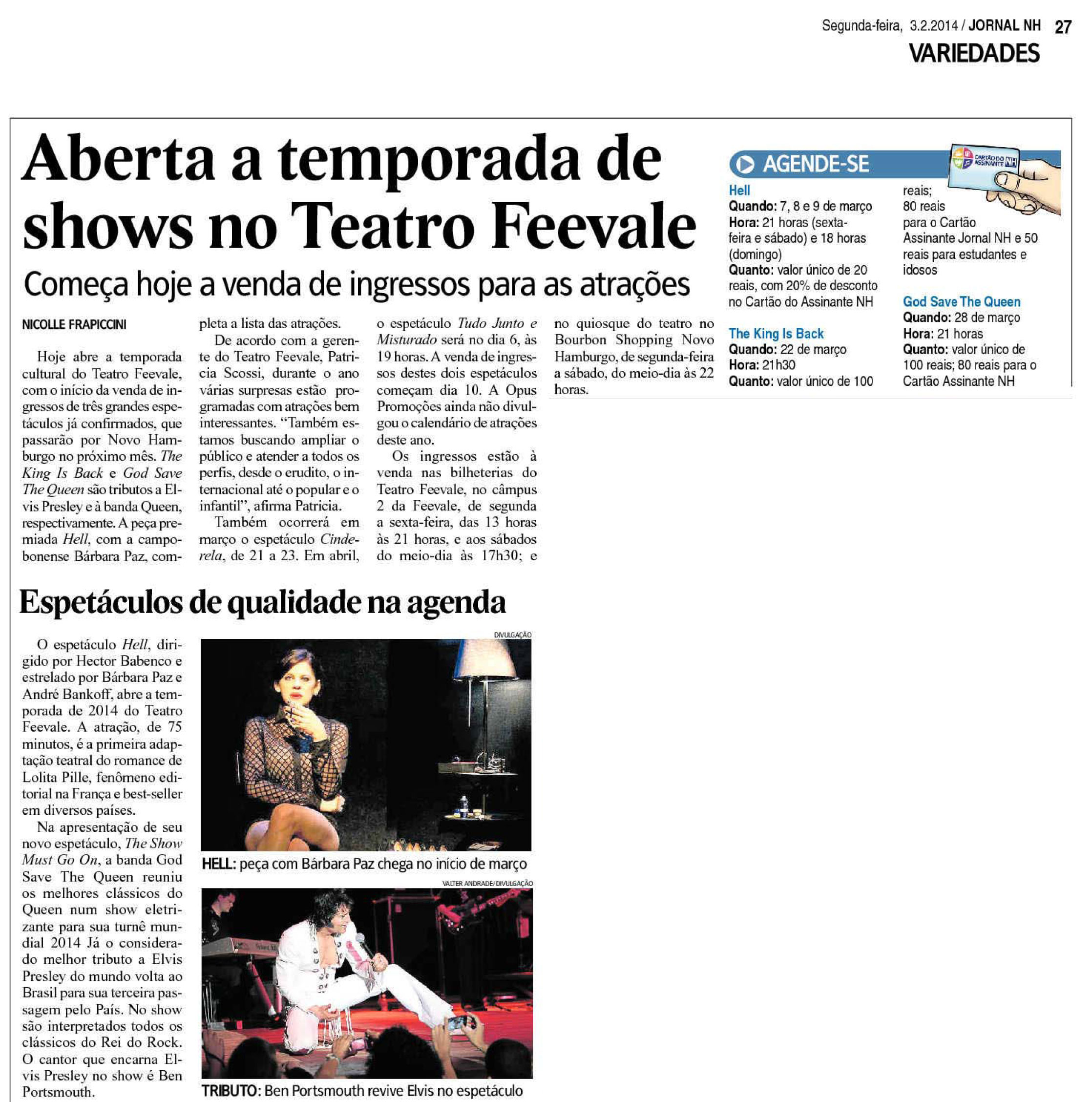 Bárbara Paz, Hector Babenco, Hell, Jornal NH, Na mídia, Novo Hamburgo, Teatro Feevale
