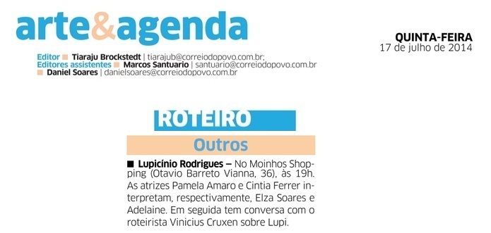Ingressos: R$30,00 (50% de desconto para artistas, estudantes e melhor idade)