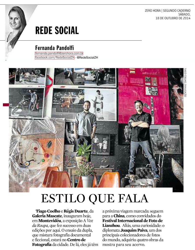 A Voz da Roupa, Fernanda Pandolfi, festival internacional de foto de lianzhou, Galeria Mascate, joaquim paiva, montevidéu, Na mídia, Régis Duarte, Rede Social, Tiago Coelho, Zero Hora