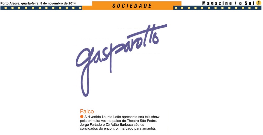 Jorge Furtado, laurita leão, Na mídia, O Sul, Paulo Gasparotto, Theatro São Pedro