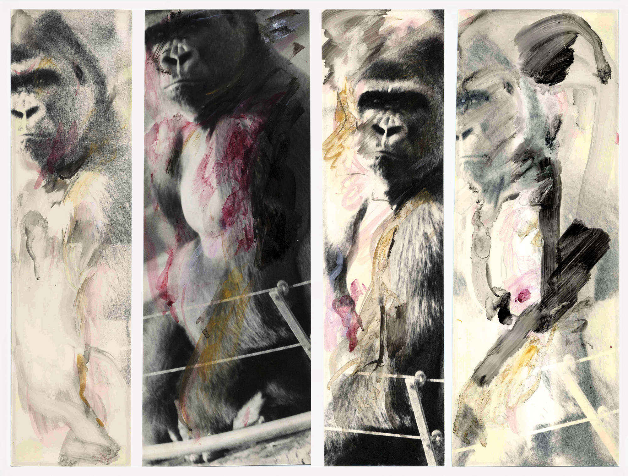 Fotografias de primatas contemplativos, aparentemente confortáveis em suas celas num zoológico, produzem um incômodo sentimento de empatia com esta espécie ancestral tão semelhante à nossa ao ponto de recuperarmos, ainda que inadvertidamente, a noção de sermos todos animais – muito embora nós dotados de uma inteligência transcendente. Entretanto a faculdade de pensar que, em tese, nos permitiria compreender a complexidade do mundo e das coisas de maneira holística, aparta a humanidade dos demais seres vivos, gerando uma cisão entre cultura e natureza absolutamente deletéria à manutenção da vida; esta consiste em uma das principais questões a se impor à agenda contemporânea nesta era do antropoceno, quando o homem impacta o ecossistema de forma tão dramática ao ponto de rivalizar com as sucessivas mudanças de ordem natural e geológica ocorridas em nosso passado remoto.