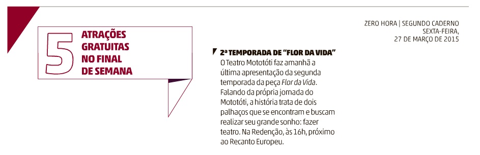 - 2005: Espetáculo “Beterrabas Caprichosas”/ Condança – Pensamento Coletivo- e Projeto Conesul RS;