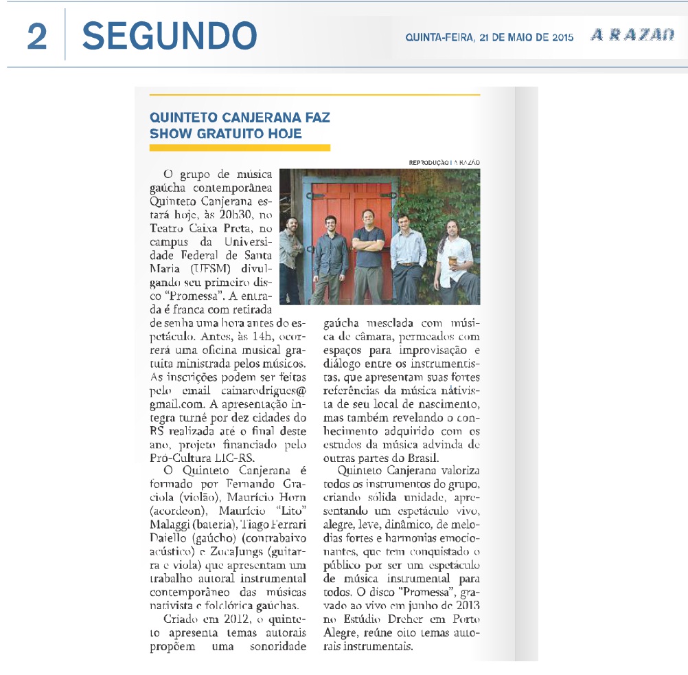 a razão, Na mídia, Promessa, Quinteto Canjerana, Teatro Caixa Preta, UFSM