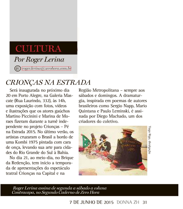 Espetáculo “Tribos” em Zero Hora de hoje