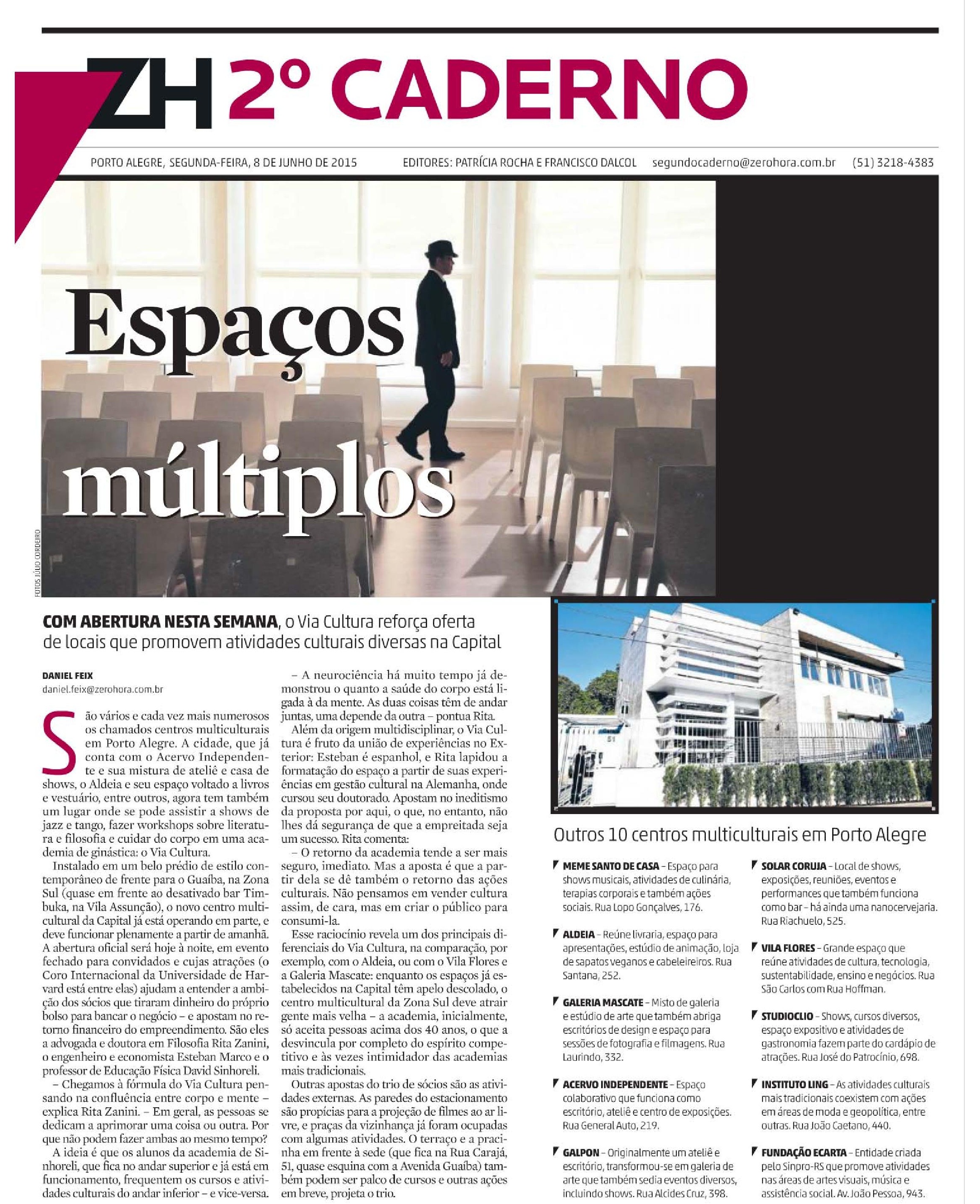 Galeria Mascate na capa do Segundo Caderno em Zero Hora de hoje
