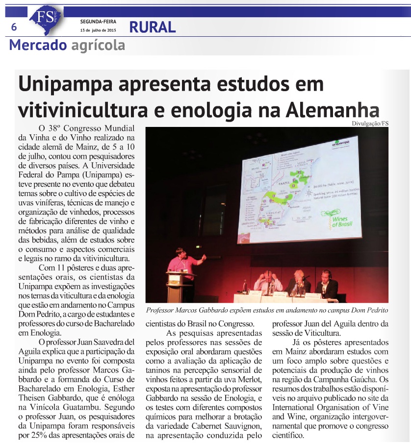 38º Congresso Mundial da Vinha e do Vinho, alemanha, Esther Theisen Gabbardo, Folha do Sul, Guatambu, Guatambu Estância do Vinho, mainz, Na mídia