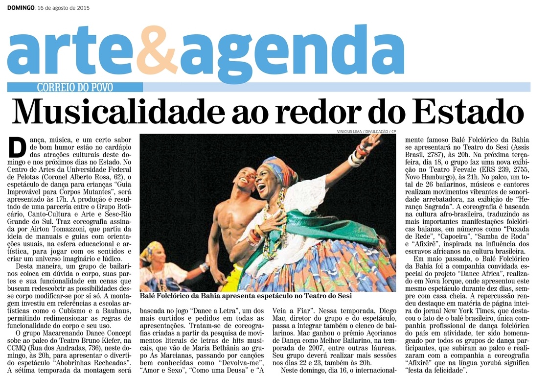 Abobrinhas Recheadas, Casa de Cultura Mario Quintana, Correio do Povo, Macarenando Dance Concept, Na mídia, Teatro Bruno Kiefer