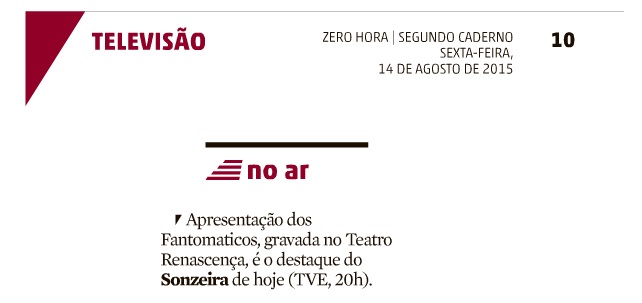 Fantomáticos, Na mídia, sonzeira, Teatro Renascença, TV Globo, Zero Hora