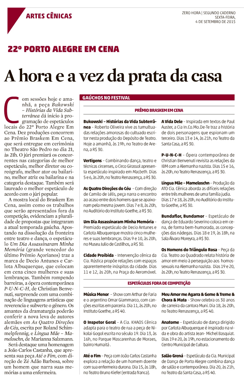 Instituto Goethe, Língua Mãe. Mameloschn, Na mídia, porto alegre em cena