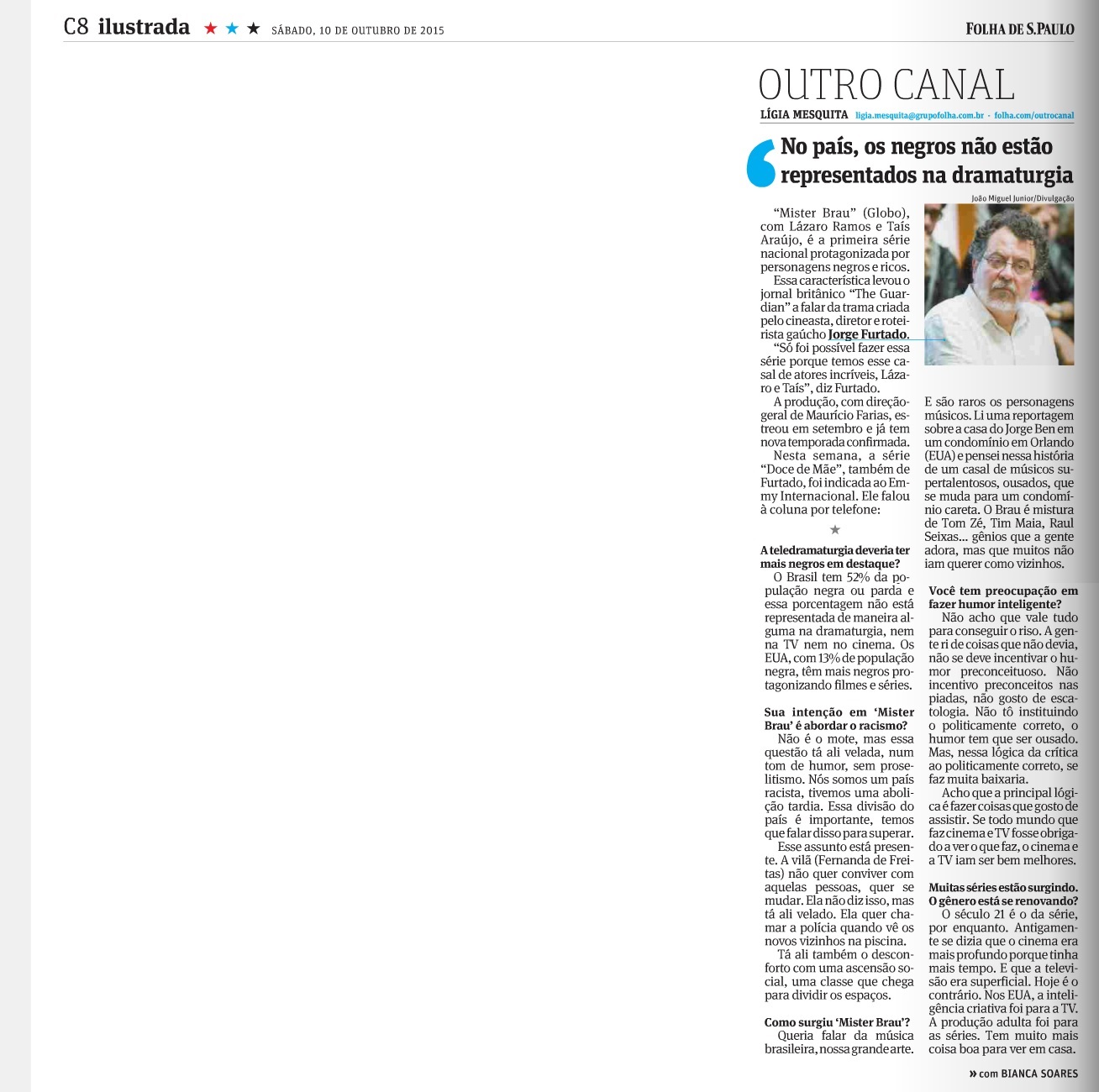 Jorge Furtado, lígia mesquita, mister brau, Na mídia, Outro Canal, TV Globo
