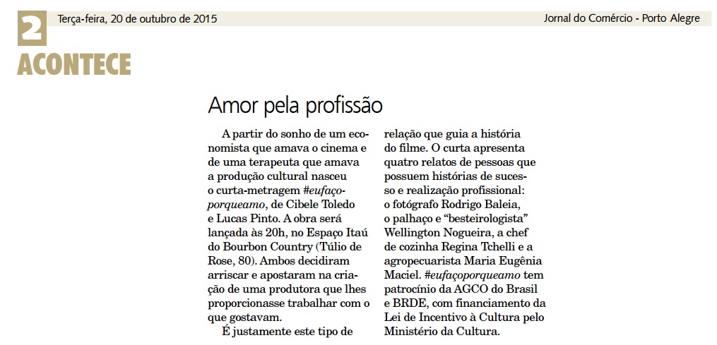 Cibele Toledo, eufaçoporqueamo, Lucas Pinto, Na mídia, tríade produtora