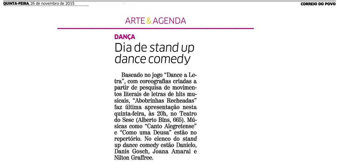 Abobrinhas Recheadas, Correio do Povo, Macarenando Dance Concept, Na mídia, Teatro do SESC