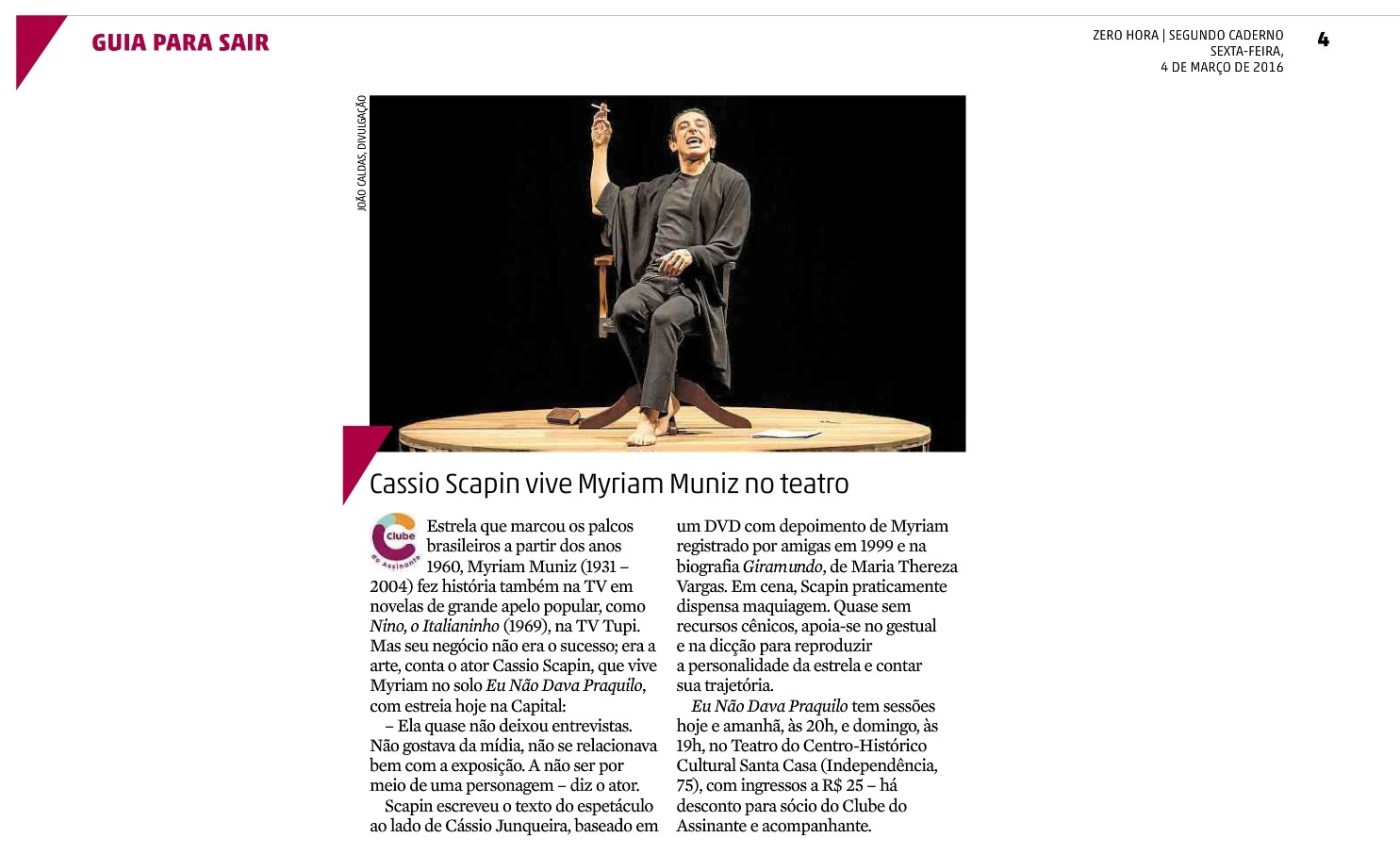 Cassio Scapin, Centro Histórico Cultural Santa Casa, Correio do Povo, Eu não dava praquilo, Jornal do Comércio, Metro, Na mídia, Zero Hora