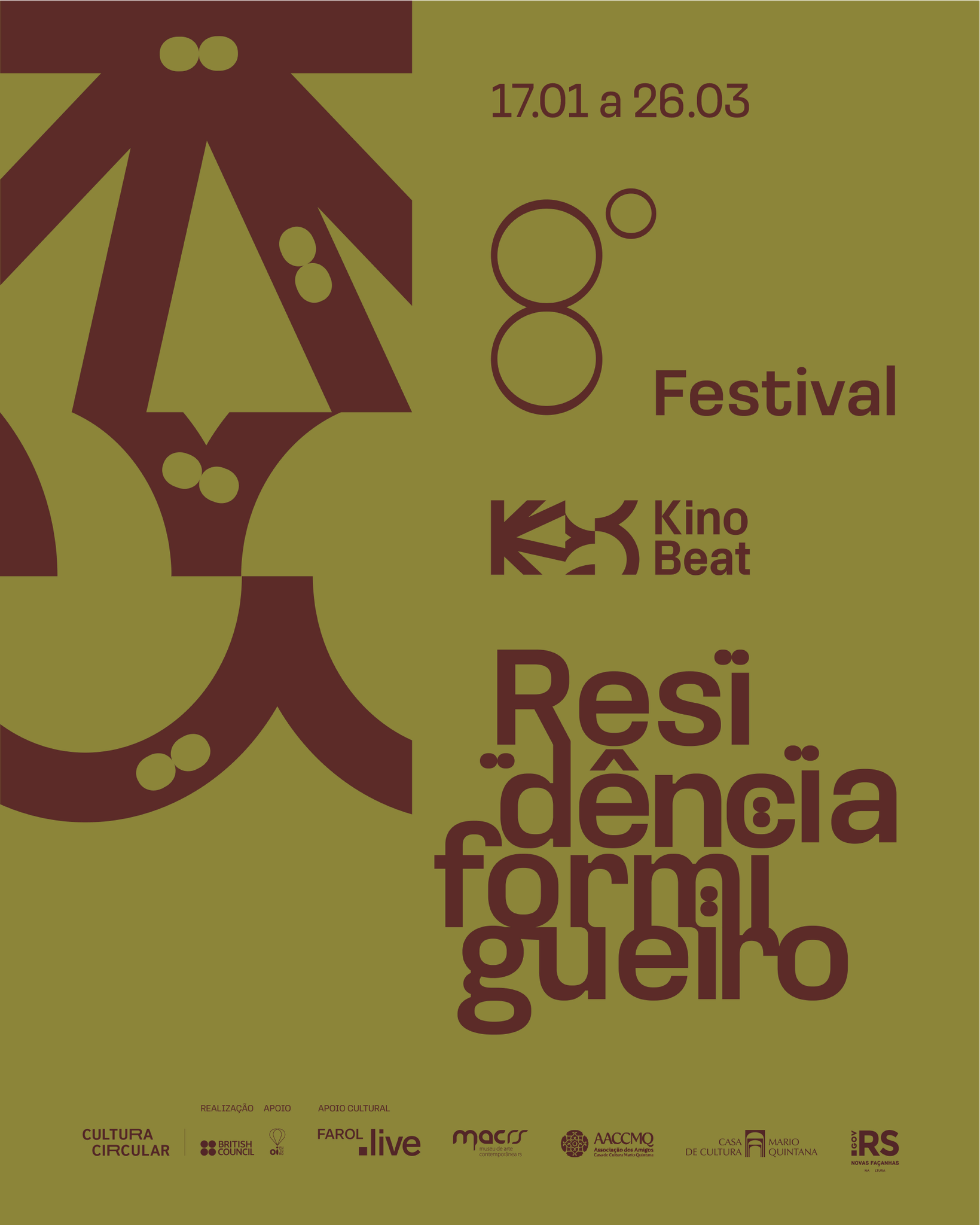 A 8ª edição do Festival Kino Beat e a residência formigueiro foram contempladas no programa Cultura Circular 2022 com realização do British Council e apoio do Oi Futuro. Apoio cultural da Casa de Cultura Mario Quintana, Secretaria de Cultura do Rio Grande do Sul, Museu de Arte Contemporânea do RS e Farol Santander. Mais informações, acesse: https://kinobeat.com/ e https://www.instagram.com/kinobeatfestival/