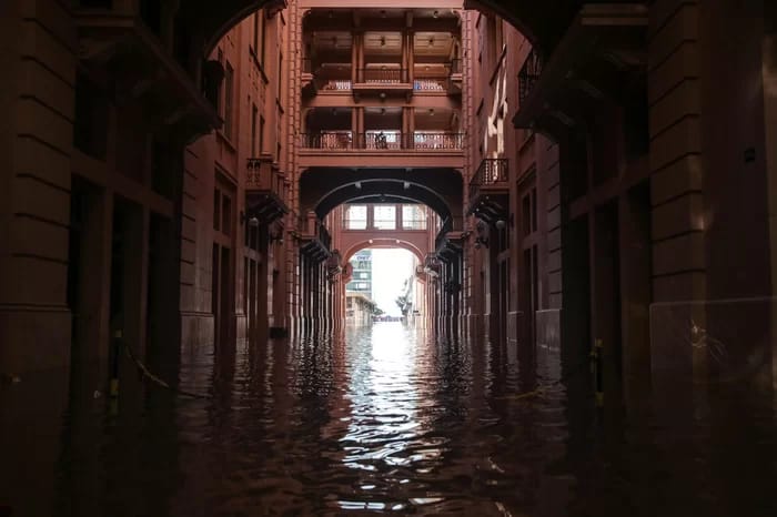 Um dos pontos do Centro Histórico mais atingidos pela enchente, a Casa de Cultura Mario Quintana, coração da vida cultural de Porto Alegre, reúne cinco operações comerciais, quatro delas localizadas na Travessa dos Cataventos e que foram fortemente afetadas: a loja Andaime, o Térreo Bar, o Café Luciamaria, a Livraria Taverna e o Lola, que fica no terraço da instituição.