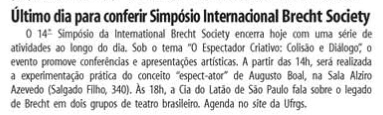 14º Simpósio da International Brecht Society
