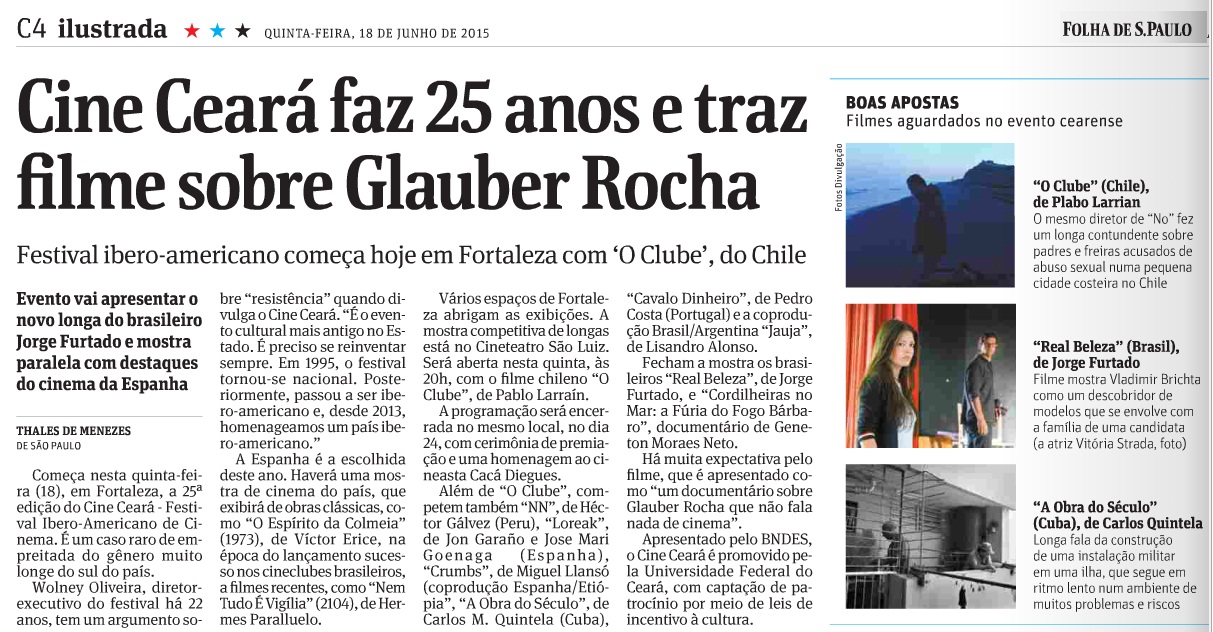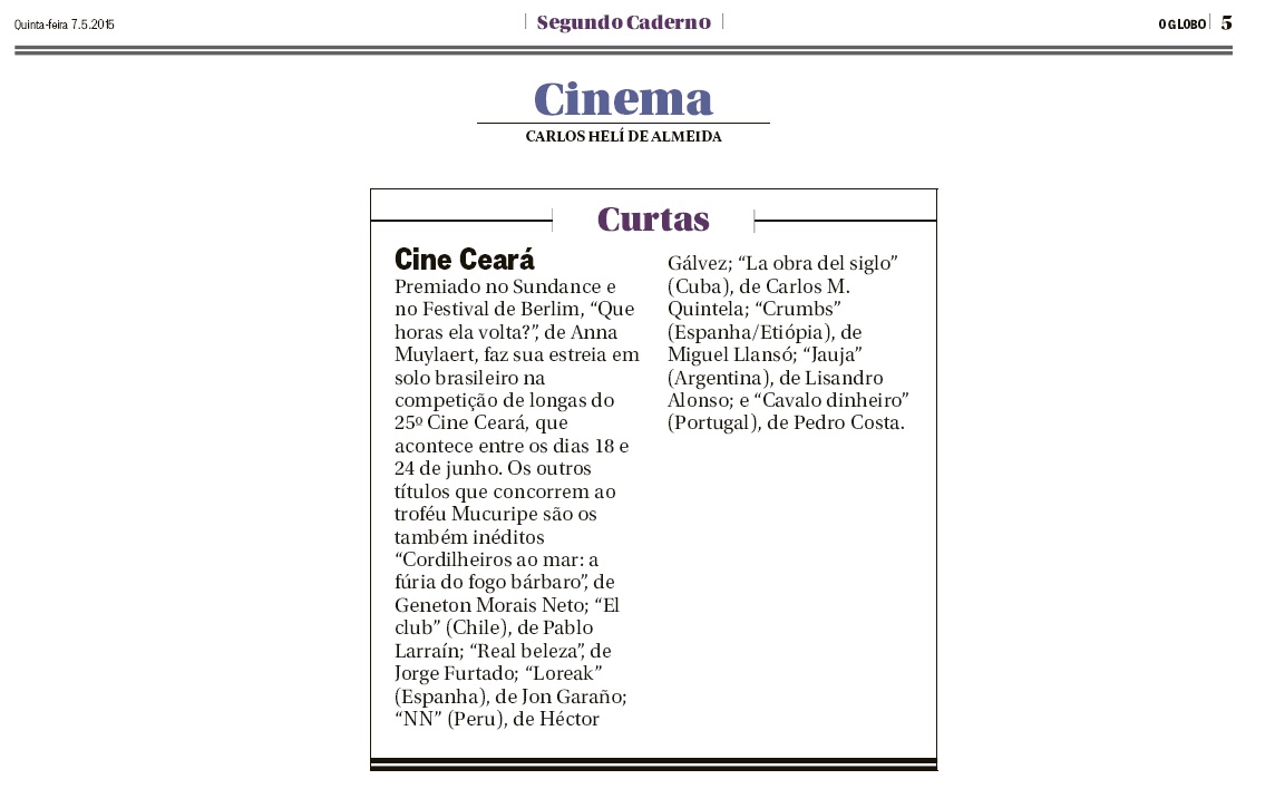 Longa-metragem “Real Beleza” no jornal O Globo de hoje