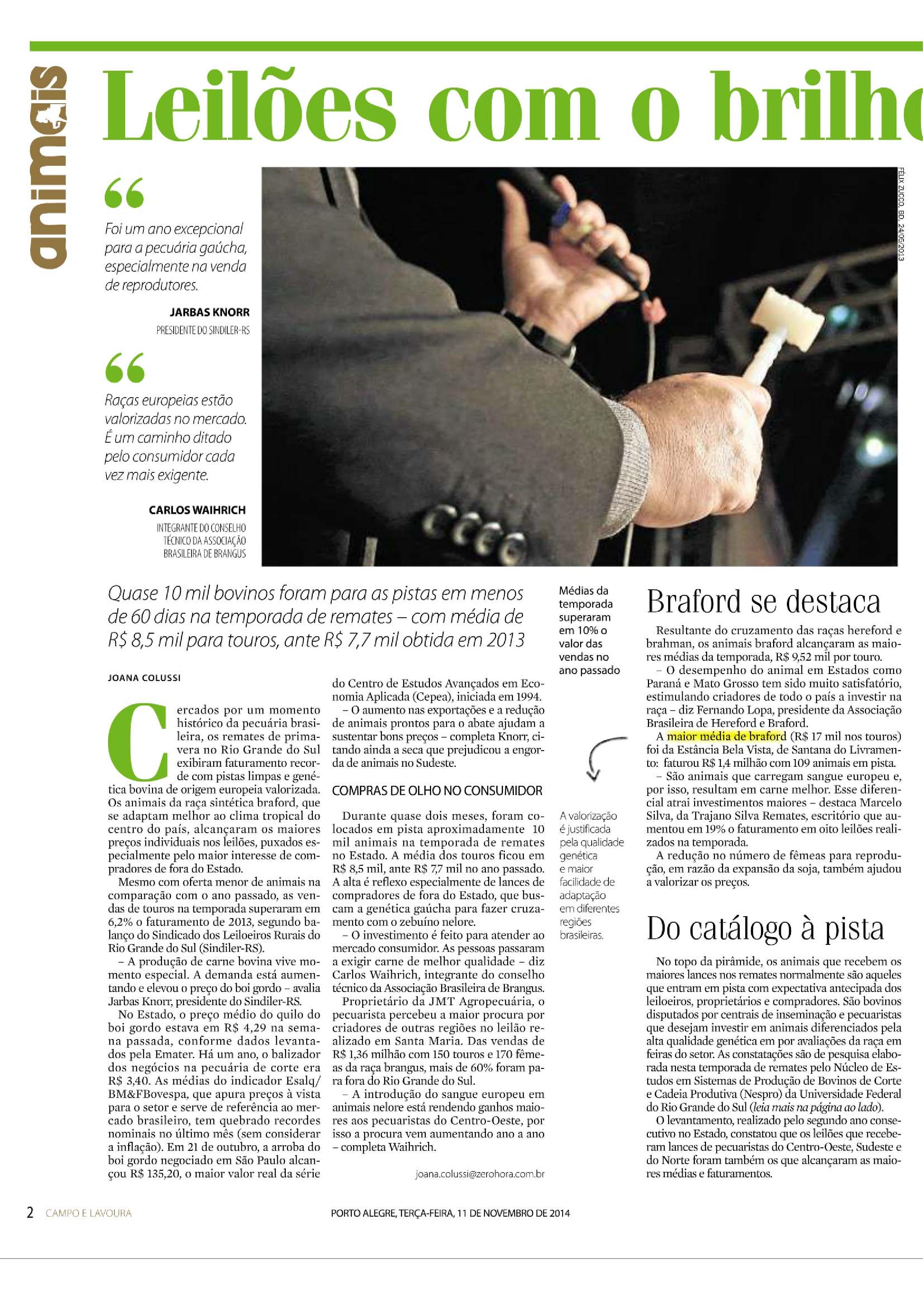 O evento conta com clientes fiéis desde 1979, o que revela satisfação com o produto e atendimento prestados, ressaltando a tradição em qualidade dos animais e no serviço pós-venda. A oferta qualificada atrai muitos pecuaristas não só da região, mas de todas as partes do Brasil, em busca da qualidade genética dos animais que tradicionalmente são vendidos. “São produtores que buscam o melhoramento de seus plantéis com animais extremamente produtivos e adaptados ao campo, como é o caso de nossa genética”, destaca Pötter, acrescentando que tais características são resultantes de longos anos de seleção genética por produtividade efetiva.