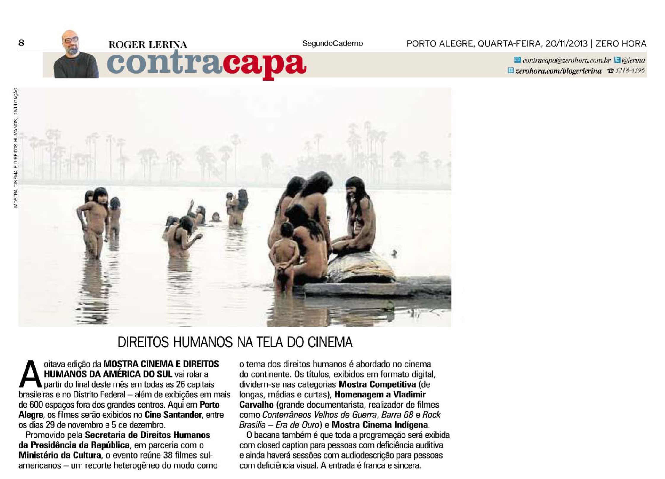 Em sua oitava edição, a Mostra Cinema e Direitos Humanos na América do Sul se desdobra em Mostra Competitiva; retrospectiva em homenagem ao cineasta Vladimir Carvalho e Mostra de Realizadores Indígenas. E as plateias é que elegem os melhores filmes, através de uma votação livre a cada final de sessão. Iniciada em dezembro de 2006, em alusão ao aniversário da Declaração dos Direitos Humanos, a Mostra Cinema e Direitos Humanos na América do Sul é uma produção da Universidade Federal Fluminense (UFF), através do Departamento de Cinema e Vídeo, com apoio da OEI, UNIC-RIO, CTAv, EBC e patrocínio da Petrobras e BNDES.