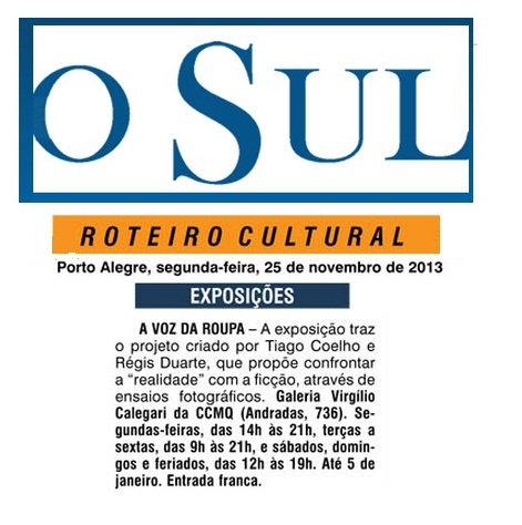 Fulano de Tal e A Voz da Roupa, de Régis Duarte e Tiago Coelho, seguem expostas até 05 de janeiro no Espaço Maurício Rosenblatt e na Fotogaleria Virgílio Calegari