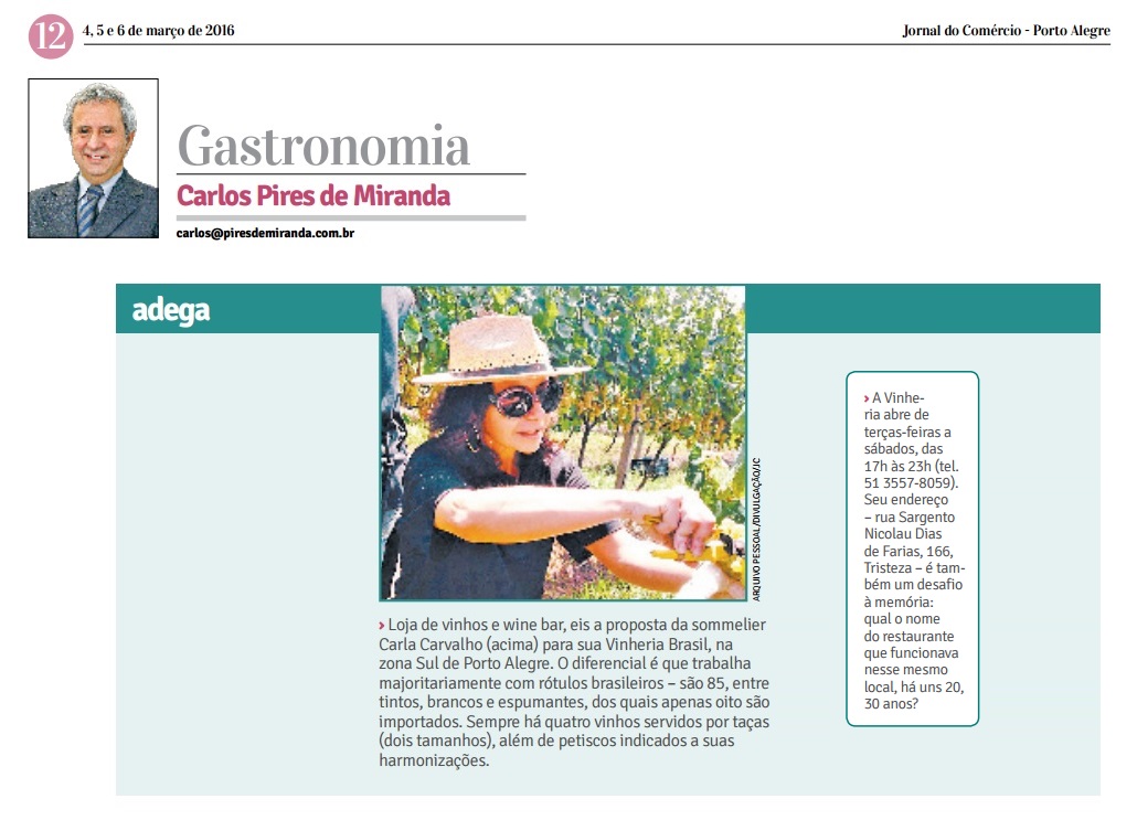 Viajando com Ju Palma na coluna Gastronomia de Carlos Pires de Miranda no Jornal do Comércio de hoje
