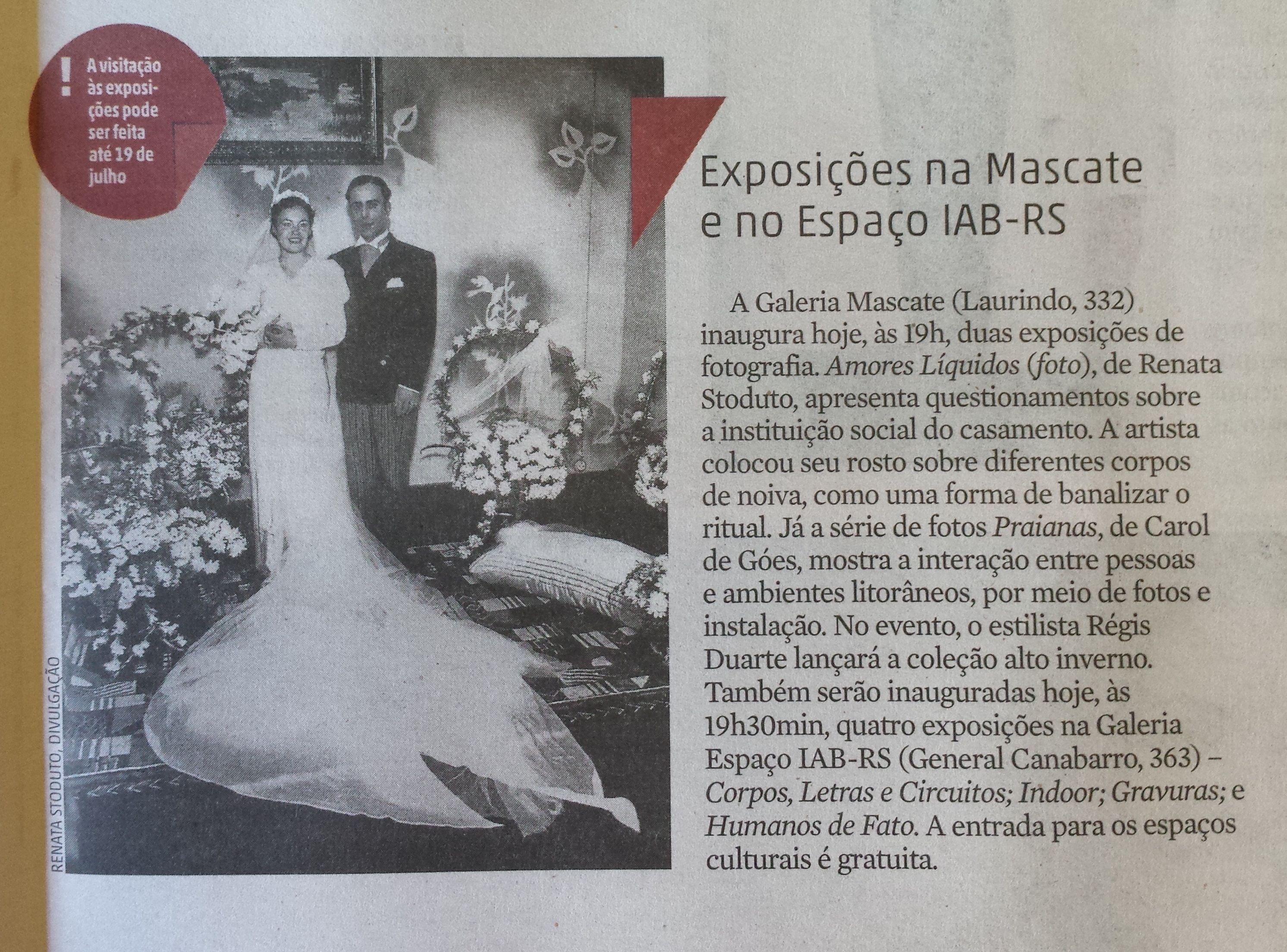 “Animal” é uma mostra coletiva de trabalhos em preto e branco, misturando desenho, pintura e fotografia. Integram os artistas Britto Velho, Carol de Góes, Chana de Moura, Daniel Eizirik, Denny Chang, Fábio Rachelle, Myriam Dutra, Régis Duarte e Tiago Coelho. As exposições seguem em cartaz até 03 de abril, com entrada franca. A Galeria Mascate funciona de terça a sábado, das 14h às 18h, na Rua Laurindo, 332.