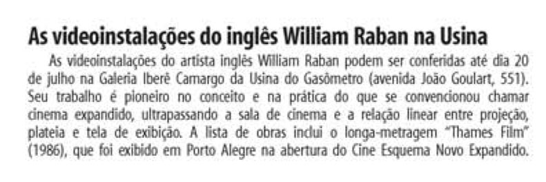 As cidades de Porto Alegre e Rio de Janeiro recebem em novembro a edição de 2015 do Cine Esquema Novo Expandido – a mostra especial do festival Cine Esquema Novo que, intercalada a cada ano com sua versão principal e competitiva, oferece ao público um recorte mais específico das relações entre o cinema autoral e a videoarte no Brasil e no mundo.