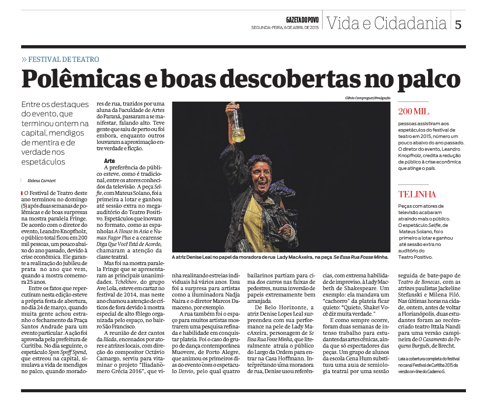 Durante os dias 22 a 24 de junho, os coreógrafos Jussara Miranda e Diego Mac desenvolvem a montagem Desvio Sinal com quatro performers e um atuador de Guayaquil, integrando a programação do Encontro Internacional de Dança que ocorre desde 1993. Concebido para a rua, a performance ocorre em faixas de segurança e inspirou-se em movimentos de pedestres e condutores de automóveis, tendo fidelizado os motes coreográficos eleitos pelo público internauta, em 2012.