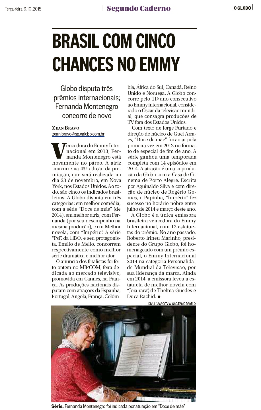 “Estou muito feliz de pertencer ao elenco da Globo, da produção de Doce de Mãe. Sou grata aos autores, Jorge e Ana, Nora Goulart, produtora executiva, e aos meus colegas com os quais formamos um jogo muito divertido”, comentou Fernanda. “Eu dedico o prêmio à Fernanda Montenegro. Essa série foi escrita para ela, ela é o nosso doce de mãe e sem ela nada disso seria possível”, declarou Furtado.