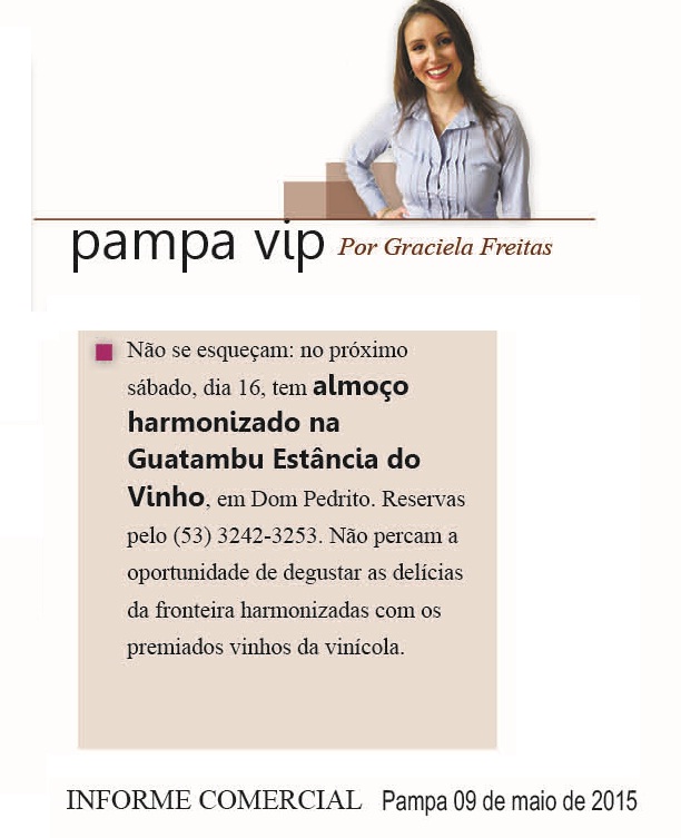 A Guatambu Estância do Vinho, de Dom Pedrito, RS, recebeu nesta quarta-feira, 03 de agosto, cinco medalhas na Grande Prova Vinhos do Brasil 2016. O evento de divulgação da avaliação, promovida pelo Ibravin em parceria com o Grupo BACO, ocorreu no Hotel Casacurta em Garibaldi, na Serra Gaúcha.