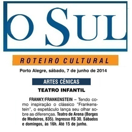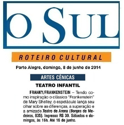 O grupo está registrando o processo do projeto através do blog http://frankyfrankenstein.blogspot.com.br/. As apresentações seguem até 08 de julho, com entrada franca.