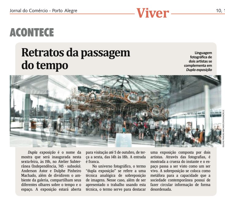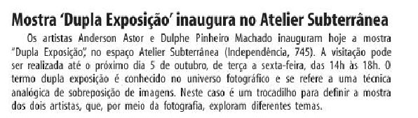 Inaugura hoje a mostra no Atelier Subterrânea, com obras de Dulphe Pinheiro Machado. O evento foi destaque nos jornais de hoje: