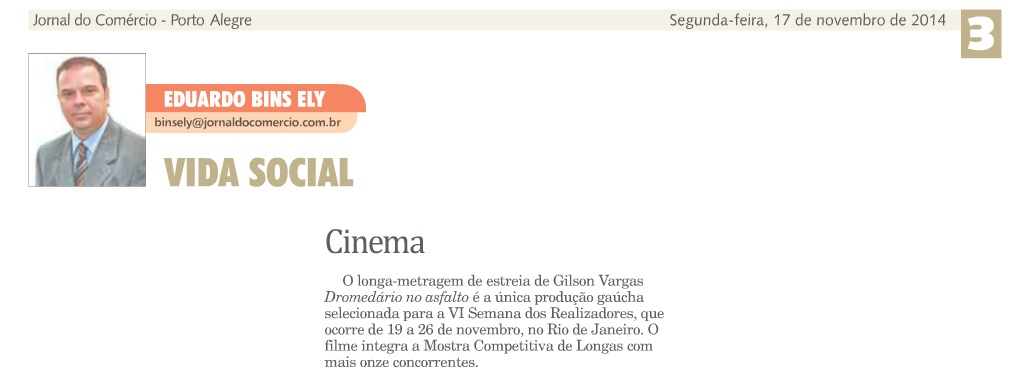 Já o longa-metragem de estreia de Gilson, Dromedário no Asfalto, foi um dos convidados da Mostra FRAPA da segunda edição do Festival de Roteiro Audiovisual de Porto Alegre, com outros quatro filmes. A exibição ocorre no dia 14 de novembro, às 19h, no Cine Santander Cultural, com entrada franca. Após a exibição, o público poderá participar de debate com o diretor.