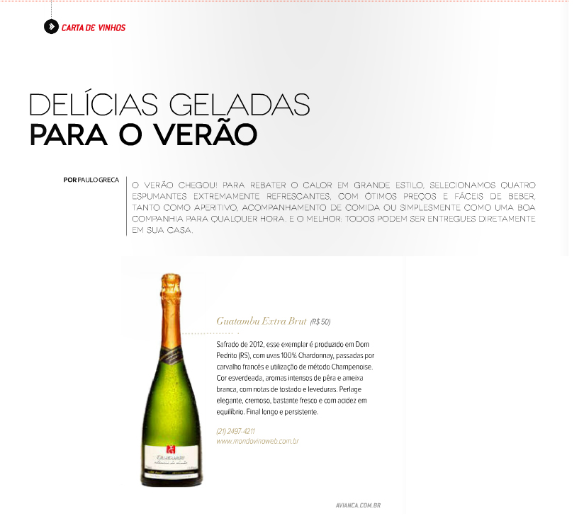 A amostra de base espumante da Guatambu foi a única da região da Campanha classificada entre os 30% superiores da safra. Conforme a enóloga Gabriela Hermann Pötter, este vinho foi elaborado para mais tarde ser lançado como espumantes Guatambu Nature e Guatambu Extra Brut, produtos de alta gama da vinícola.