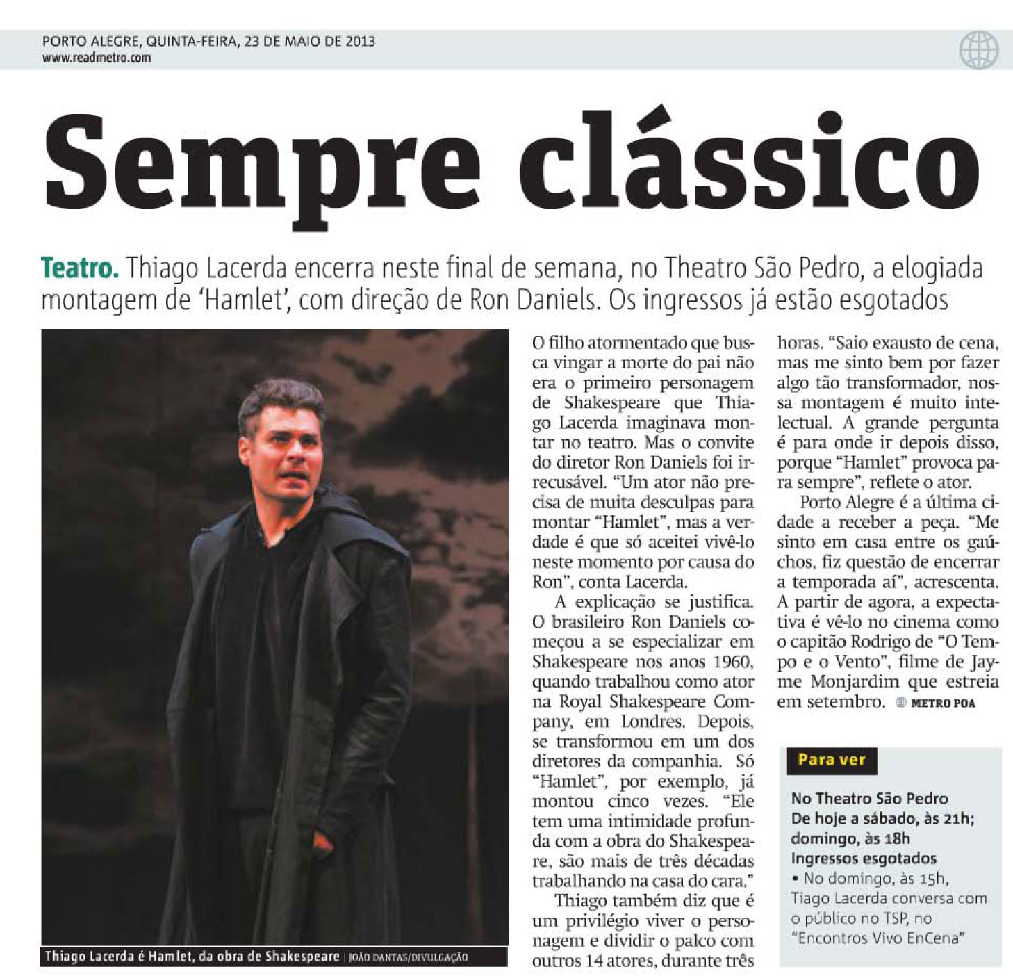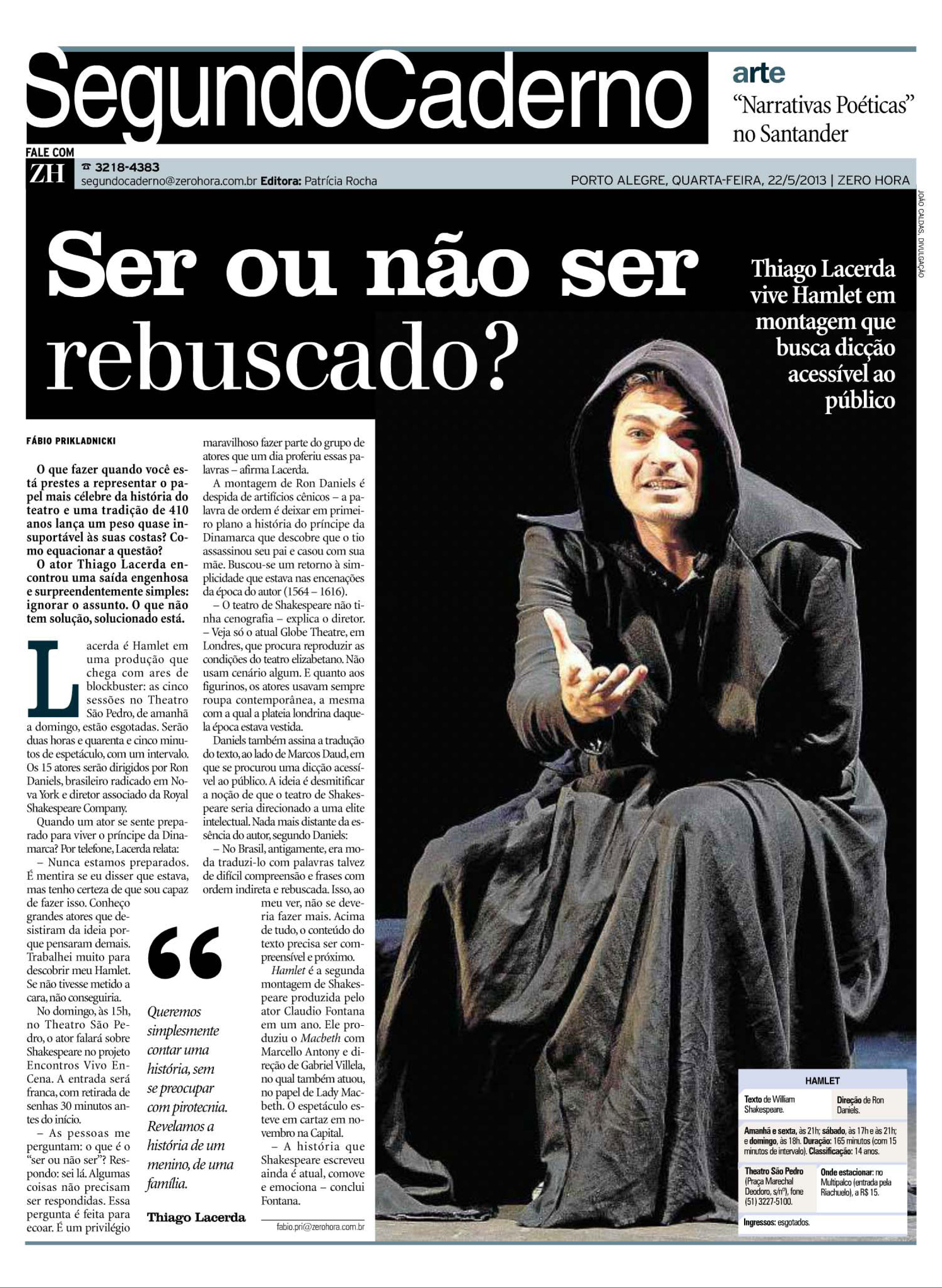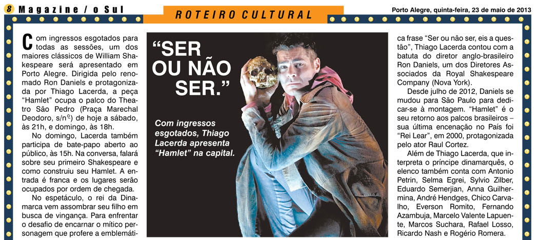 “A versão de Hamlet, da Armazém Companhia de Teatro, é um marco.” (Claudia Chaves, Jornal do Brasil)