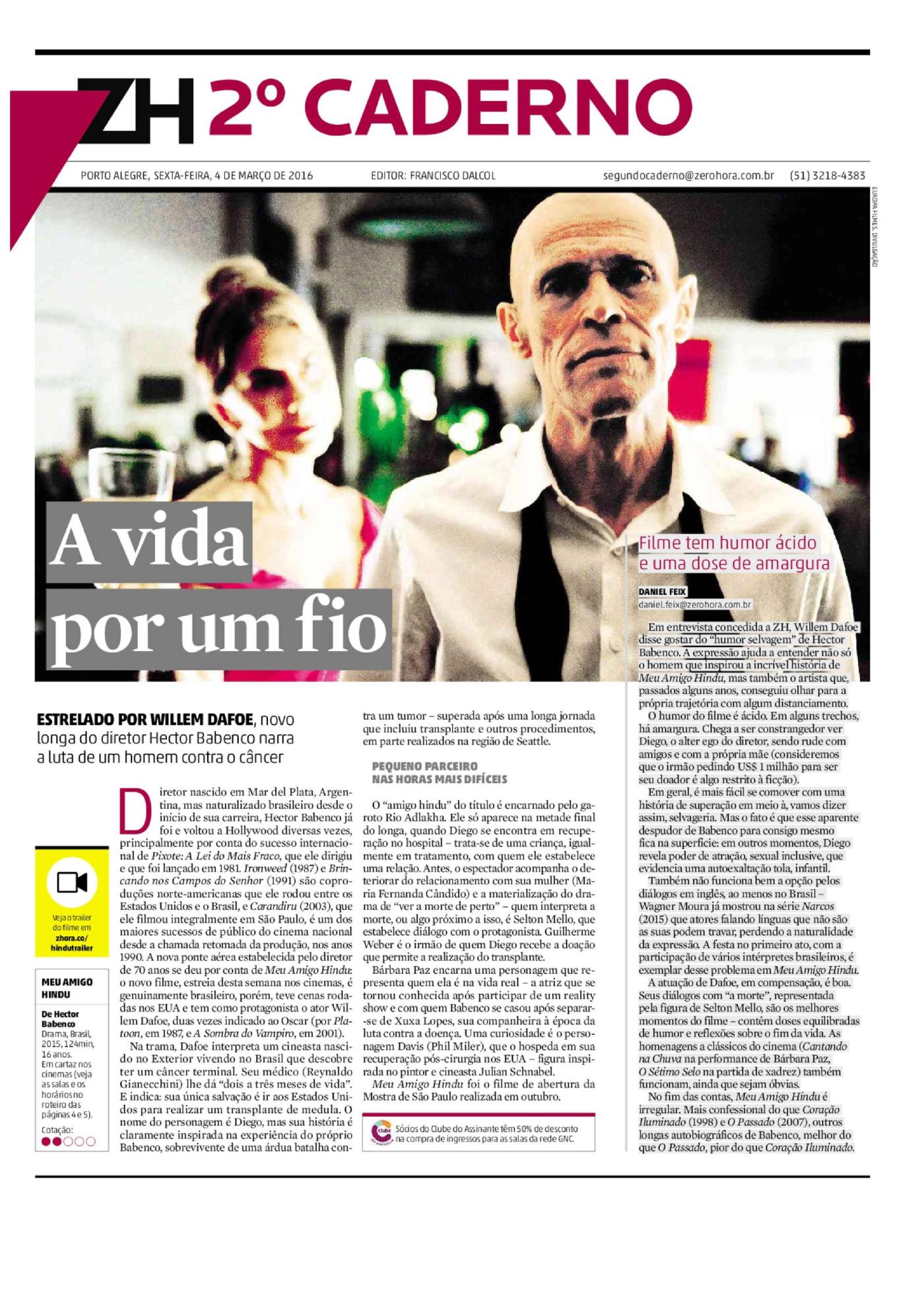 Longa-metragem “Meu Amigo Hindu” em Zero Hora