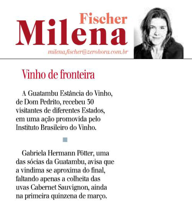 A Guatambu Estância do Vinho é uma vinícola boutique de Dom Pedrito, RS. Seu trabalho é realizado através de administração familiar, em pequena escala, somente com uvas próprias, lotes limitados e garrafas numeradas desde 2003. A vinícola já conquistou diversas premiações importantes, entre elas o TOP TEN Expovinis 2014, com o vinho Rastros do Pampa Tannat. Mais informações, acesse o site:http://www.guatambuvinhos.com.br/