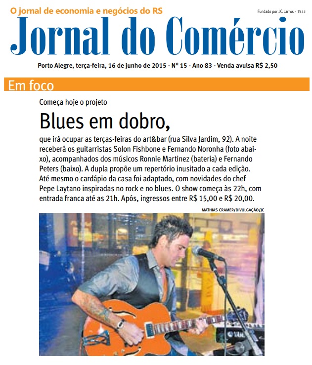 Solon Fishbone é um dos pioneiros guitarristas brasileiros de blues. Iniciou na carreira em 1984 e já atuou ao lado de músicos como Eddie C.Campbell, James Wheeler, Billy Branch, John Primer, Phil Guy e Hubert Sumlin. O artista possui cinco discos lançados, sendo o mais recente deles, “Fishtones” de 2011. http://www.solonfishbone.com/