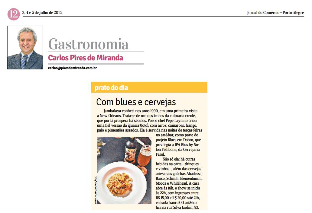 A partir de maio, os fãs de Blues e de cerveja artesanal poderão conhecer a união entre esses dois gêneros clássicos da música e da popular bebida: a IPA Blues by Solon Fishbone, produzida pela Cervejaria Farol, de Canela, RS. Resultado da parceria do cervejeiro Antonio Lysiak e do músico Solon Fishbone, a IPA Blues tem tiragem inicial de mil litros e será comercializada em garrafas de 500ml e barris para distribuição em torneiras.