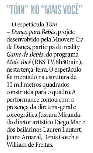 A Muovere Cia de Dança é uma das mais destacadas e importantes companhias profissionais do sul do Brasil. Com 24 de trajetória, é reconhecida nacional e internacionalmente pela excelência dos seus agentes artísticos e qualidade de trabalho em dança.