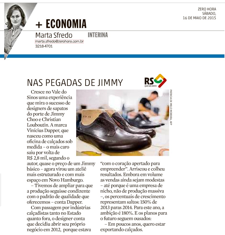 Sapataria Vinícius Dapper em Zero Hora de hoje