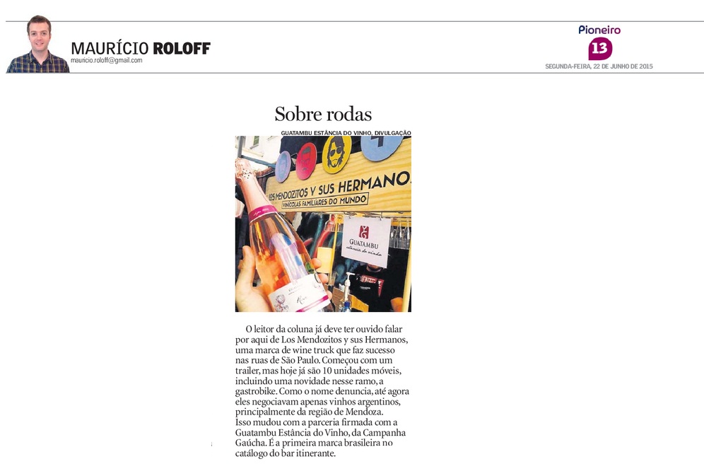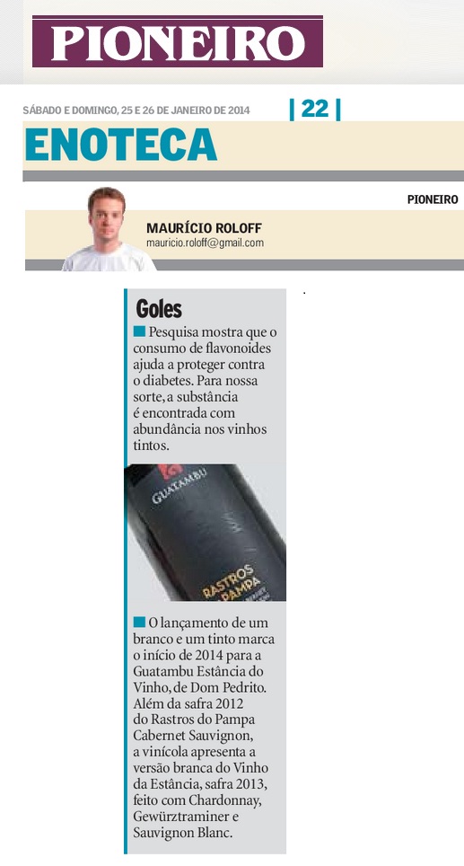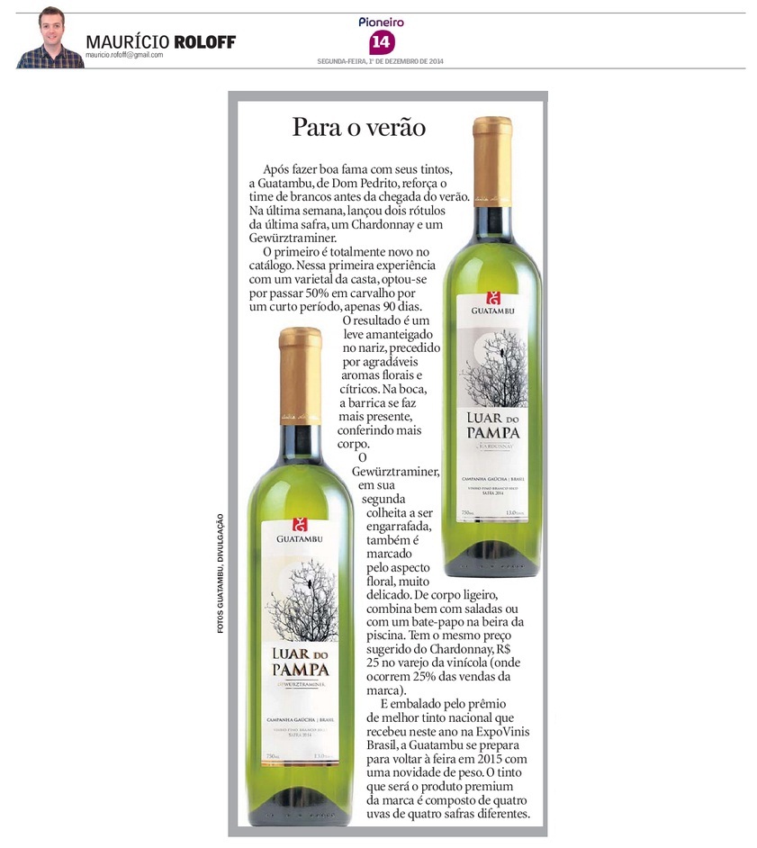 Guatambu Estância do Vinho no jornal Pioneiro de hoje